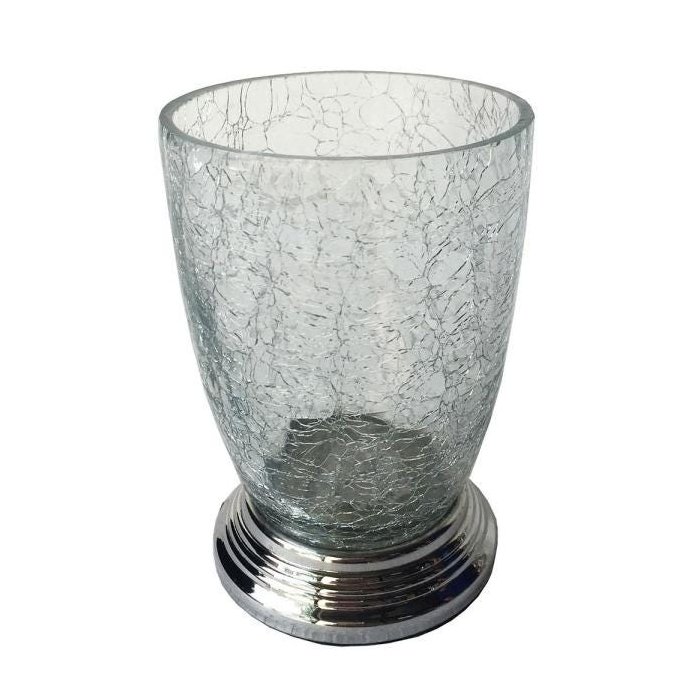 Porta Cotonetes Alumínio E Vidro Craquelado