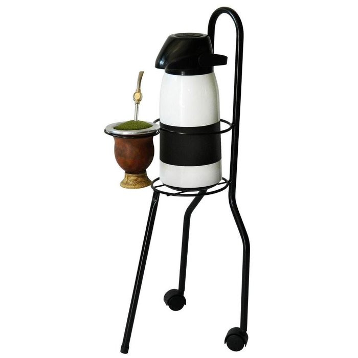 Porta Cuia e Garrafa Térmica Porta Chimarrão Erva Mate Aramado Tubular 2 Rodinhas Aço Preto