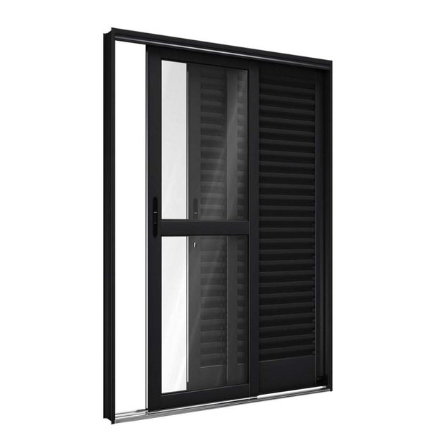 Porta de Aço Balcão de Correr Lateral 3 Folhas 215x150cm Facilitá Lucasa Preto