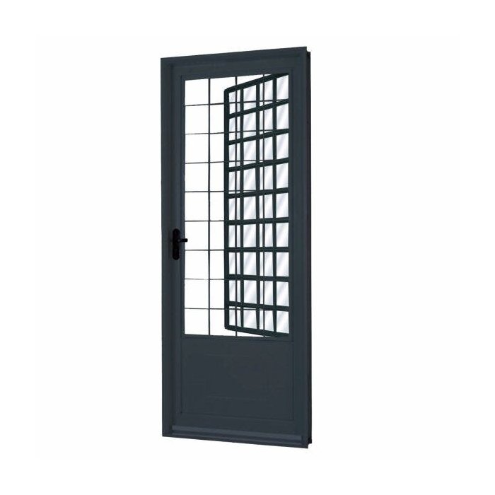 Porta de Aço com Postigo Grade Quadriculada Minas Sul Primer 217 x 85 x 12cm Mgm Cinza