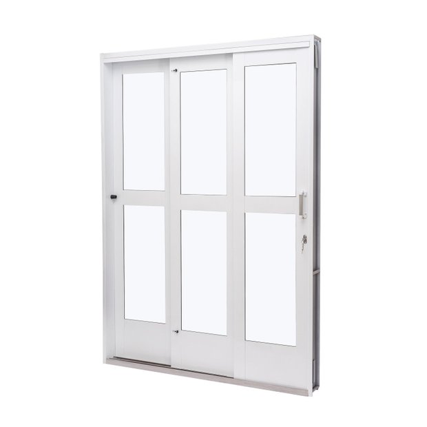 Porta de Aço de Correr 215x152cm 3 Folhas com Vidro Liso Qualitysol Ramassol Branco