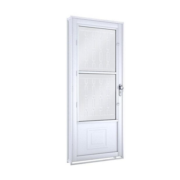 Porta de Aço Postigo 215x90cm com Grade Mosaico e Vidro Mini Boreal Lucasa Branco
