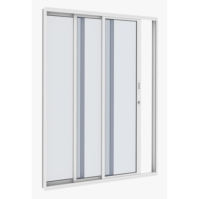 Porta de Correr Alumínio 03 Folhas Suprema com vidros liso incolor temperados 4mm - Pintura Eletrostática Branca (Epóxi)