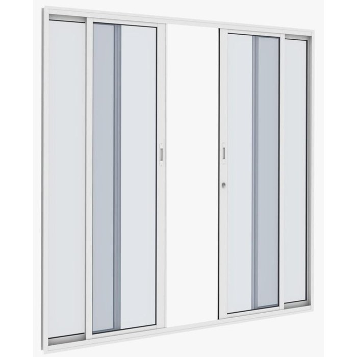 Porta de Correr Alumínio 04 Folhas Suprema com vidros liso incolor temperados 4mm - Pintura Eletrostática Branca (Epóxi)
