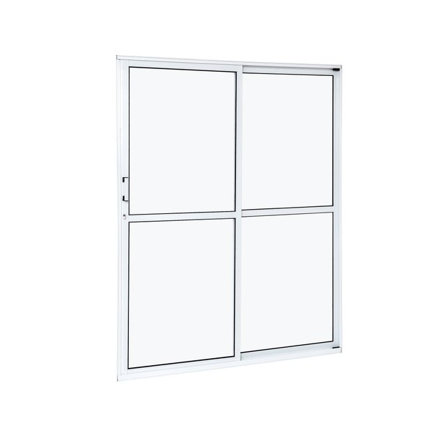 Porta de Aluminio Balcão 210x160cm 2 Folhas com Vidro Liso e Batente 7,9cm Cristal Ramassol Branco