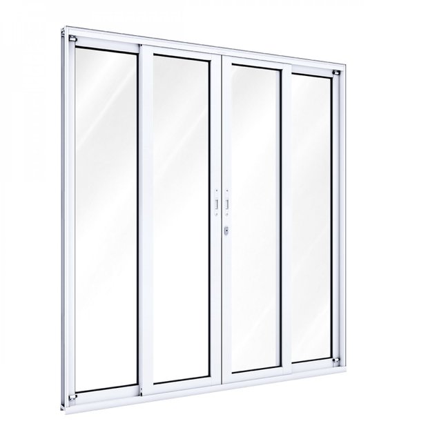 Porta de Alumínio Balcão 215x200 4 Folhas com Vidro Liso Lucasa Alumínio Branco