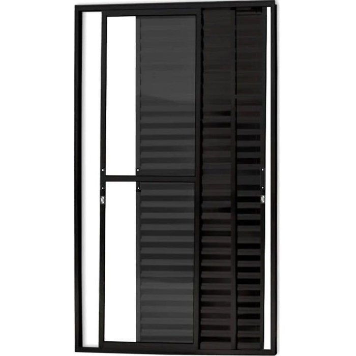 Porta de Alumínio Balcão 3 Folhas Móveis com Fechadura Linha Premium:2,10 X 1,50/preto Preto