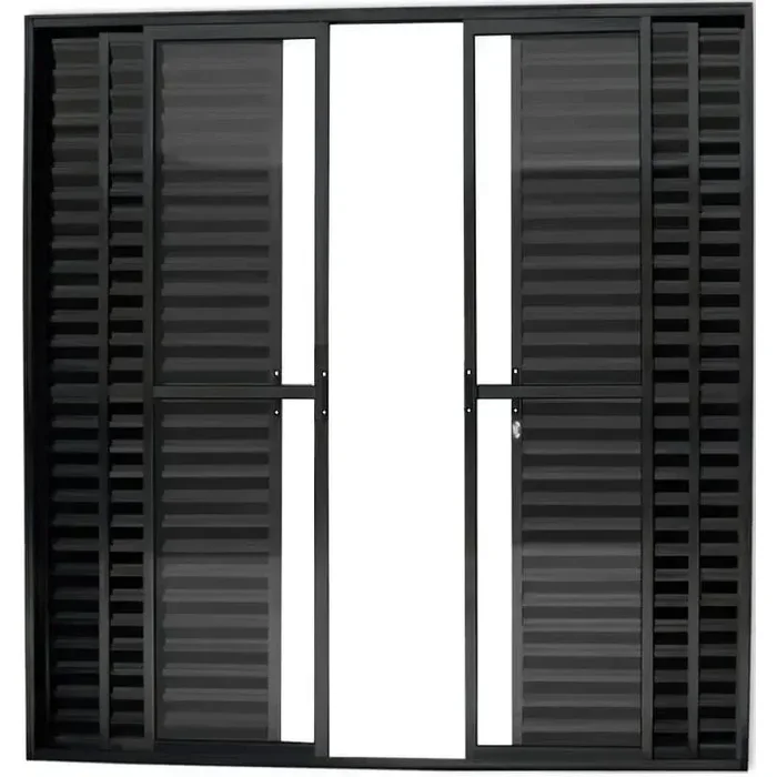 Porta de Aluminio Balcão 6 Folhas com Trinco Linha Leve:2,10 X 1,50/preto