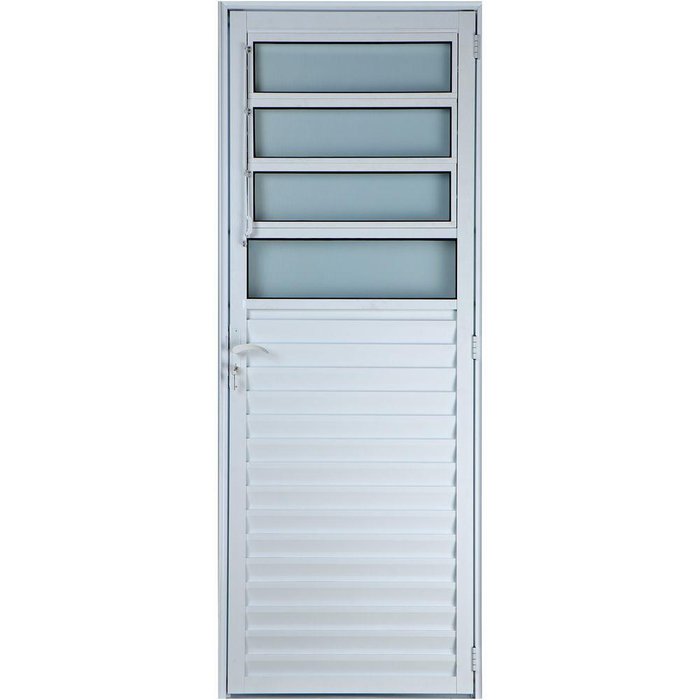 Porta De Alumínio Basculante 2,10 X 0,70 Esquerda Vidro Mini Boreal Linha All Soft Cor Branco PORTA BASCULANTE VIDRO MINI BOREAL As Portas Basculante são indicadas para diversos ambientes como: cozinhas, corredores, salas, lavanderias e divisórias de ambientes. Com seu sistema de básculos de abrir 45° proporciona ventilação e iluminação para o ambiente.Com sua pintura especial que garante um brilho por muito mais tempo que outros materiais, faz da porta de Aluminio uma ótima opção de Qualidade e Custo Benefício. Especificações TécnicasPorta Basculante de Aluminio de Abrir (Giro).Altura Total Produto: 210 Centímetros.Largura Total Produto: 70 Centímetros.Espessura Total do Produto: 4,5 Centímetros.Pintura Eletrostática Branca (Epóxi).Modelo e Espessura do Vidro: Vidro Mini Boreal de 3,5mm.Abertura de 45° dos BásculosModelo de abertura: 1 Folha de Abrir (Giro).Opções de lado de Abertura: Direita ou Esquerda.Contêm: 1 Folha de Abrir (Giro) – Par de Chaves – Maçaneta.Conteúdo: Perfis de Alumínio, Batentes, Ferragens, Dobradiças e Acessórios.Produto Pronto para Instalar (Acabado e Montado) Fácil Instalação.Fabricante: Fabricação Própria (Desde 2004 no mercado).Local indicado: Ambiente Interno e Externo - Residencial e Comercial.Produto Normatizado (ABNT).Produto com Alta Durabilidade.Embalagem de Proteção Incluso.Garantia contra defeitos de fabricação.