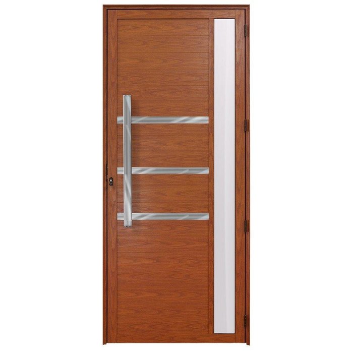 Porta de Alumínio com friso e visor lambril com puxador linha maxx - Pintura Eletrostática Amadeirado (Epóxi) Os produtos dessa linha são confeccionados com perfis da melhor procedência. Os acessórios utilizados garantem vida útil e perfeito funcionamento. As Portas com friso é excelente para quem busca sofísticação e durabilidade em sua residência, com o visor lateral trás sofisticação e claridade no ambiente, além que seu vidro fosco trás mas privacidade no ambiente. Pode ser intalado tanto na parte interna como na parte externa, pois a pintura eletrostática epóxi garante maior preservação na porta e garantindo uma maior durabilidade. PORTA ABRE PARA ESQUERDA VOCÊ ESTANDO DO LADO EXTERNO PARA INTERNO. Dimensões da produto: