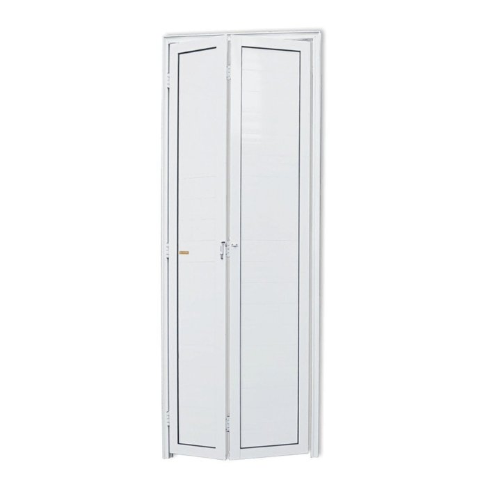 Portas de Abrir de Alumínio Linha L.25 Pintura Eletrostática Branca 2 Folhas de Sanfonar para o Lado Direito Lambris Horizontais Trinco e Dobradiças na Cor do Produto Altura 210 Cm Largura 60 Cm Requadro 4,6 Cm Garantia de 5 anos contra defeitos de fabricação