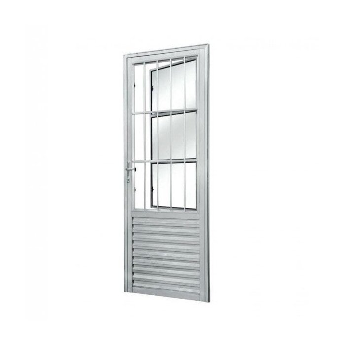 Porta de Alumínio com Grade Vidro Liso Sólida Mgm 210 x 80cm Branco