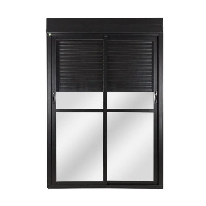 Porta de Aluminio com Persiana Integrada 220x200cm 2 Folhas Manuais Preto