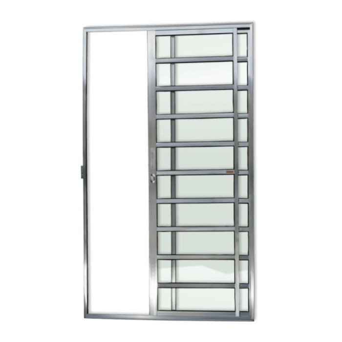 Porta de Alumínio de Correr 210x120cm 2 Folhas com Travessa e Vidro Liso Anodizado Super Brimak