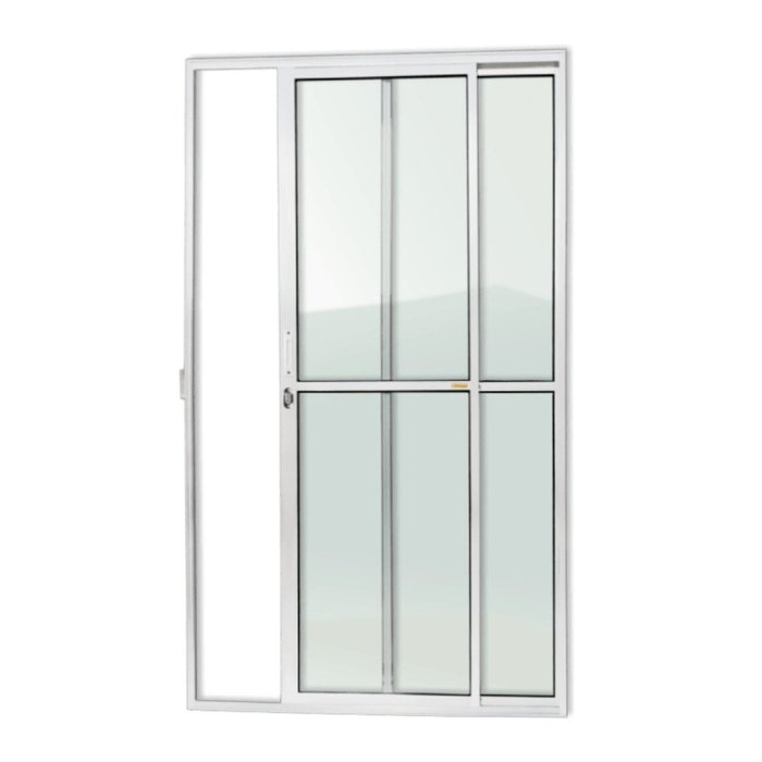 Porta de Correr 2 Folhas de Alumínio Linha Super 25 Pintura Eletrostática Branca 1 Folha Fixa e 1 Folha Móvel Vidro Liso Incolor 3mm Com Fechadura Altura 210 Cm Largura 150 Cm Requadro 7,8 Cm Garantia de 5 anos contra defeitos de fabricação