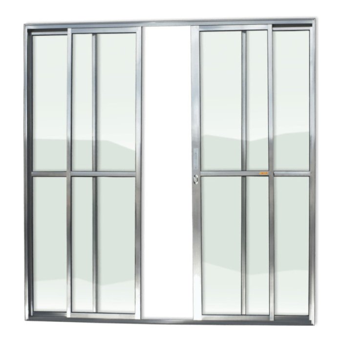 Porta de Alumínio de Correr 210x200cm 4 Folhas com Vidro Liso e Anodizado Brilhante Super Brimak