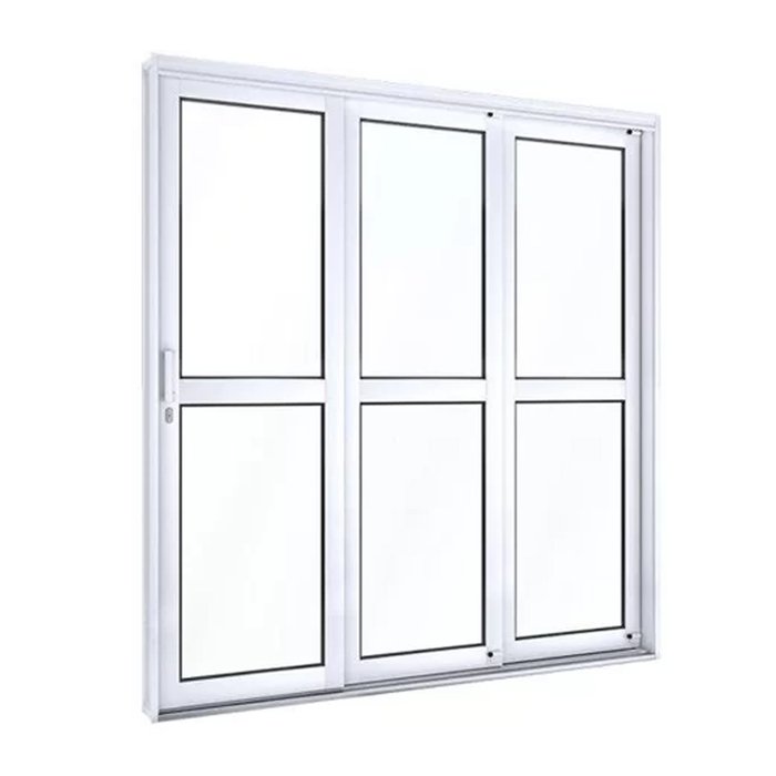 Porta De Alumínio De Correr Balcão 3 Folhas 2,10 X 2,00 X 10 CM Branca Com Fechadura