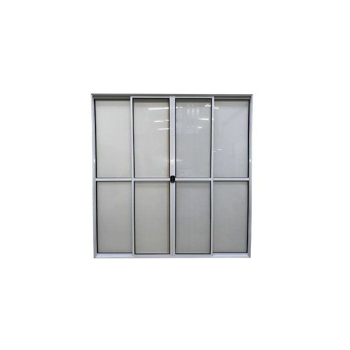 Porta de Alumínio de Correr 4 Folhas com Trinco Abertura Central 210x150cm Branco Allo Esquadrias Branco