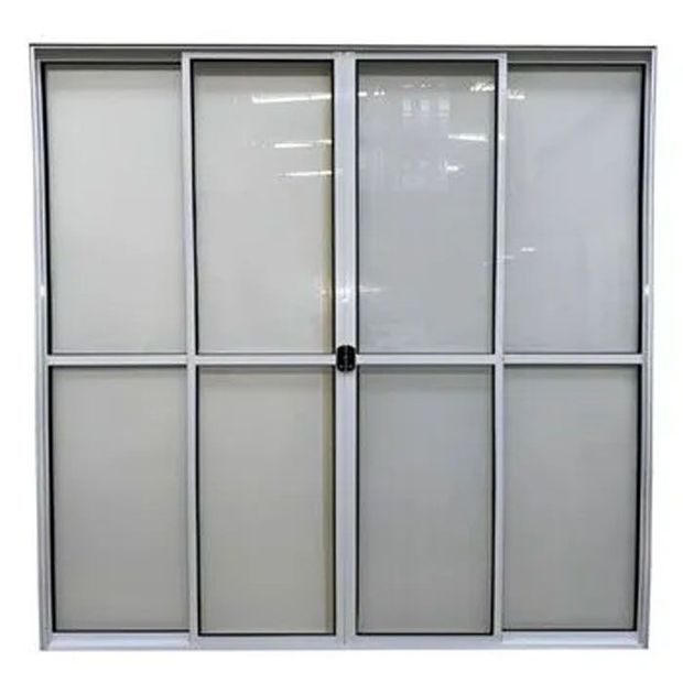 Porta de Alumínio de Correr 4 Folhas com Trinco Abertura Central 210x200cm Branco Allo Esquadrias Branco
