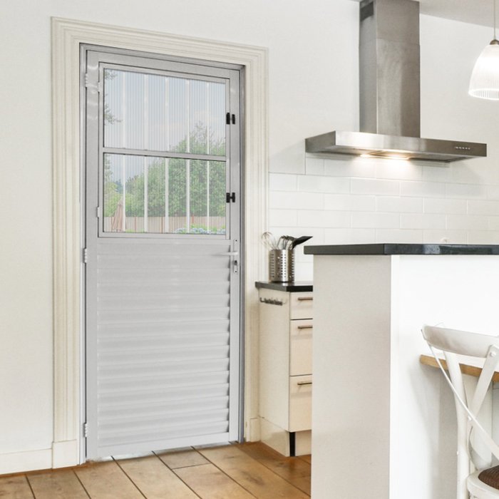 Porta de Alumínio Lambril 210x80cm Lado Esquerdo Postigo Hale Esquadrias Branco