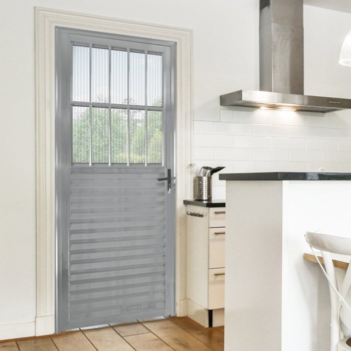Porta de Alumínio Lambril 210x80cm Lado Esquerdo Postigo Hale Esquadrias Cromado