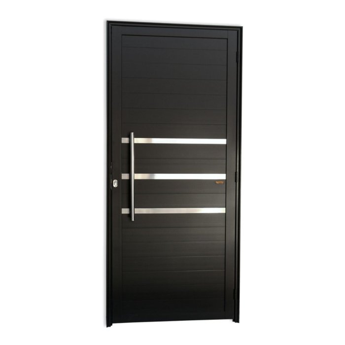 Porta de Alumínio Lambril com Puxador 25 Detalhe com Friso 210cm X 100cm Brimak Preto