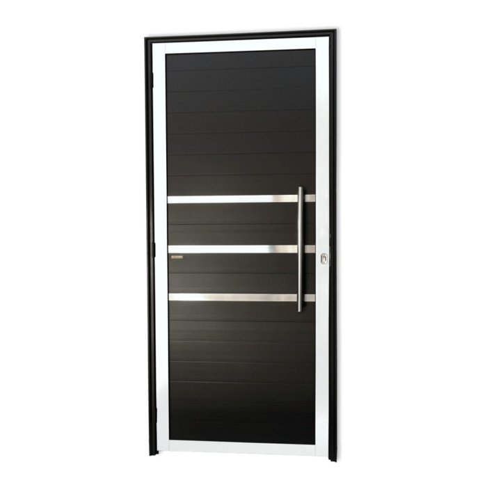 Porta de Alumínio Lambril com Puxador 25 e Detalhe em Friso 210cm X 100cm Brimak Mix Preto