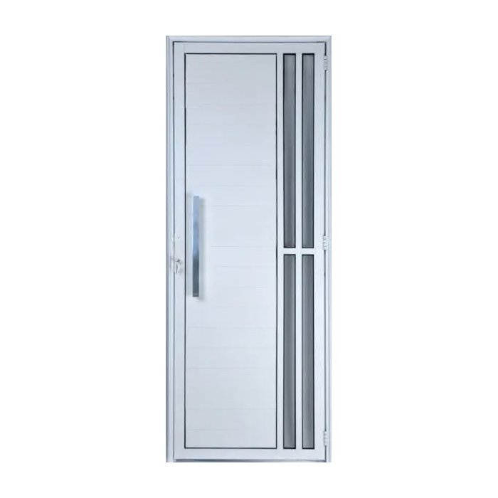 Porta de Alumínio Lambril com Visor e Puxador 2 Torres Branco 210 x 90 Esquerda Linha All Soft Branco