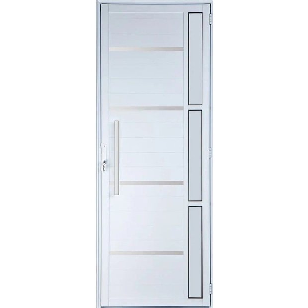 Porta de Aluminio Lambril Frisos Visor Lateral com Puxador Linha Premium:2,10 X 0,90/esquerda/branco Branco