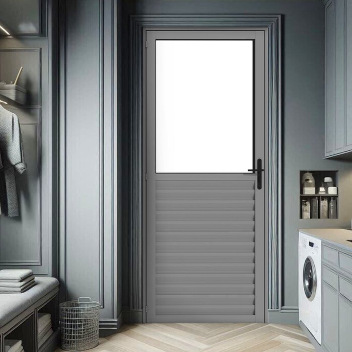 Porta de Aluminio Laminada 210x85cm sem Divisão Cinza