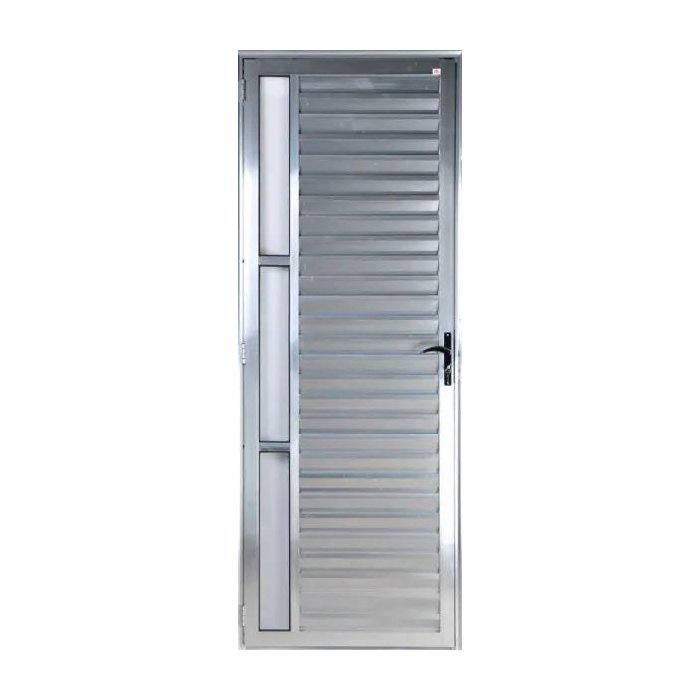 Porta de Alumínio Palheta com Visor 210 x 100 Esquerda Linha All Soft Cor Brilhante Alumínio Brilhante