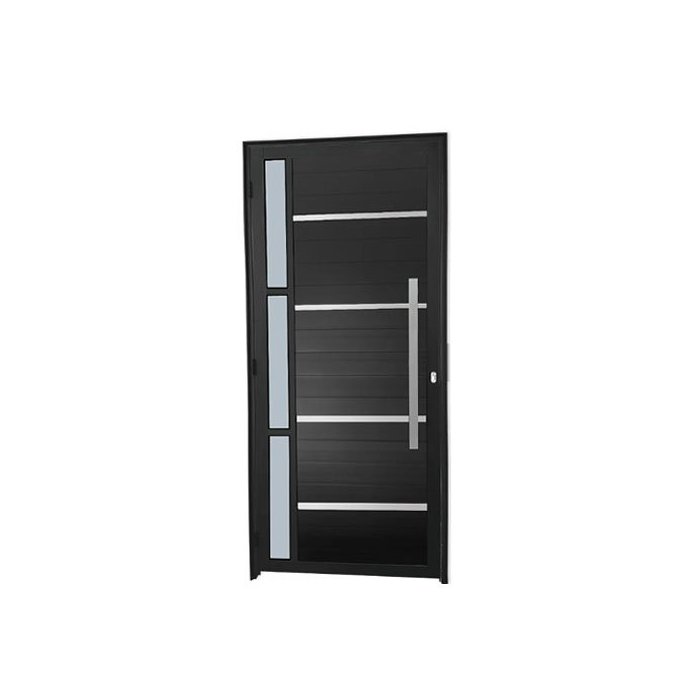 Porta de Alumínio Pivotante Frisada Com Visor Lado Esquerdo 210x90cm Preto Allo Esquadrias Preto