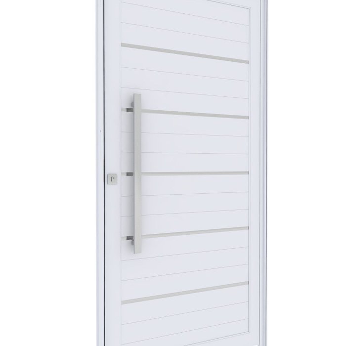 Porta de Alumínio Pivotante Lambri 215cm X 105cm com Friso e Puxador de 80cm Lucasa Ideale Branco