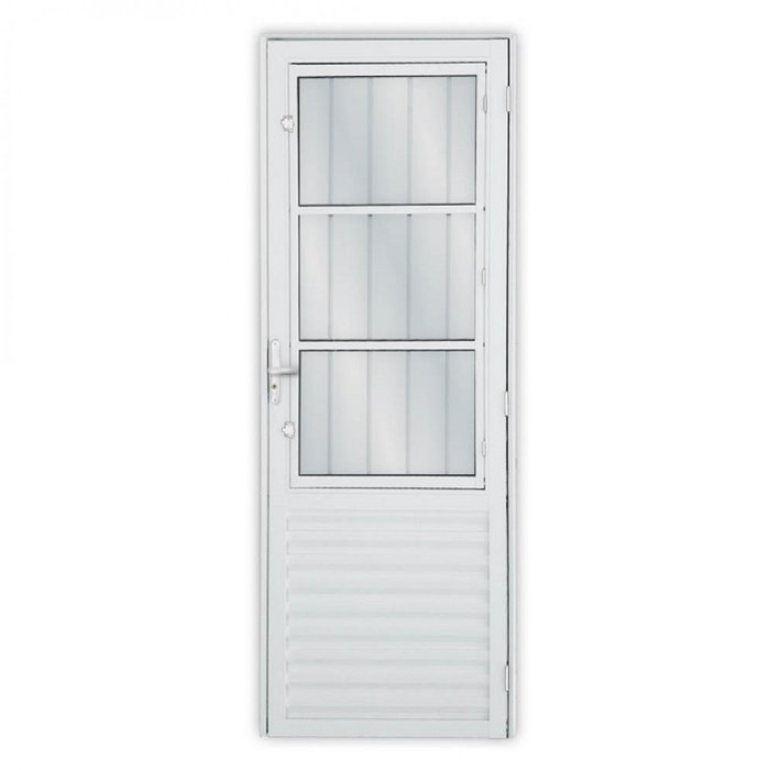 Porta de Alumínio Postico 210x80cm com 3 Vidros Mini Boreal Linha Solida MGM Branco