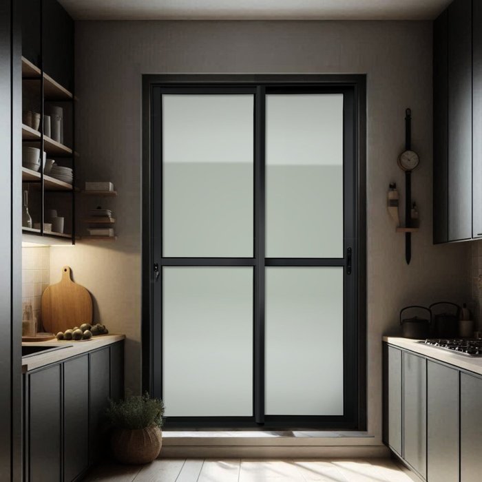 Porta de Correr 2 Folhas de Alumínio, Linha Elite, Pintura Eletrostática Preta, 2 Folhas Móveis, Vidro Liso Incolor 3mm, Fechadura c/chave Tetra e Fecho automático para travamento das Folhas, Altura 210 Cm, Largura 200 Cm, Requadro 7,4 Cm, Garantia de 5 anos contra defeitos de fabricação.