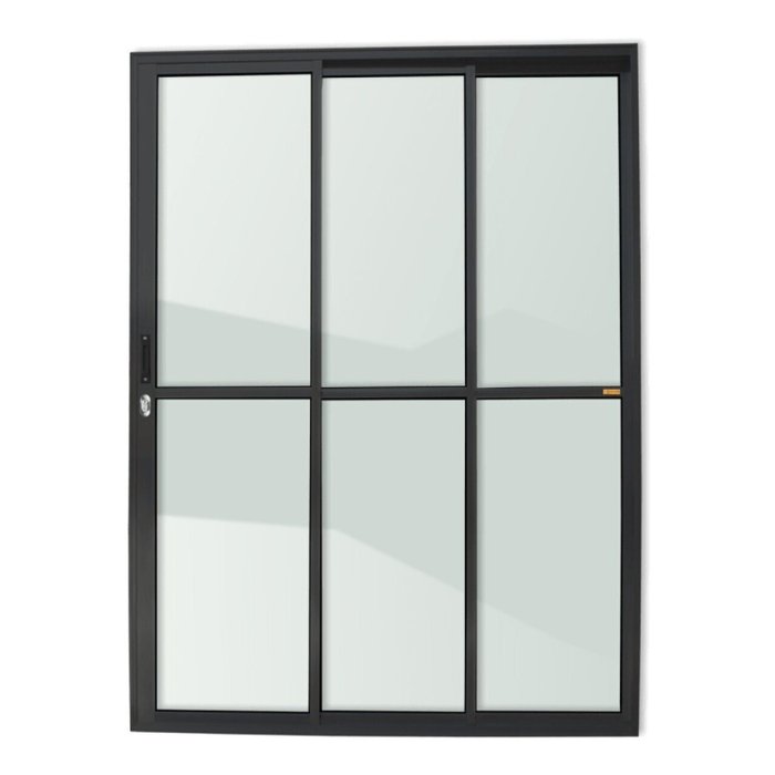 Porta de Correr 3 Folhas 1/3 Super Vidro Liso 210cm X 180cm Brimak Preto