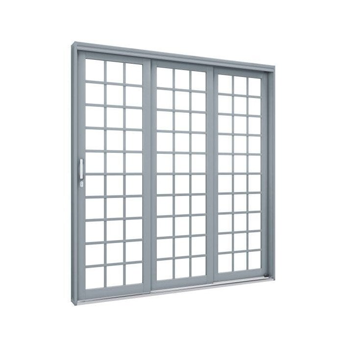 Porta de Correr Aço 3 Folhas com Chave Tetra Natural Lucasa Premium 213 x 150cm Cinza