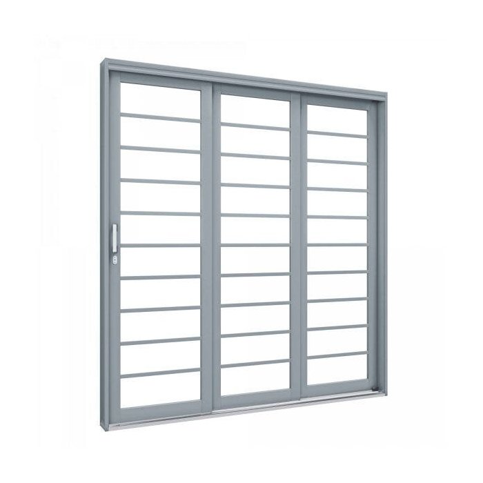 Porta de Correr Aço 3 Folhas com Travessa e Chave Tetra Natural Lucasa Premium 213 x 150cm Cinza