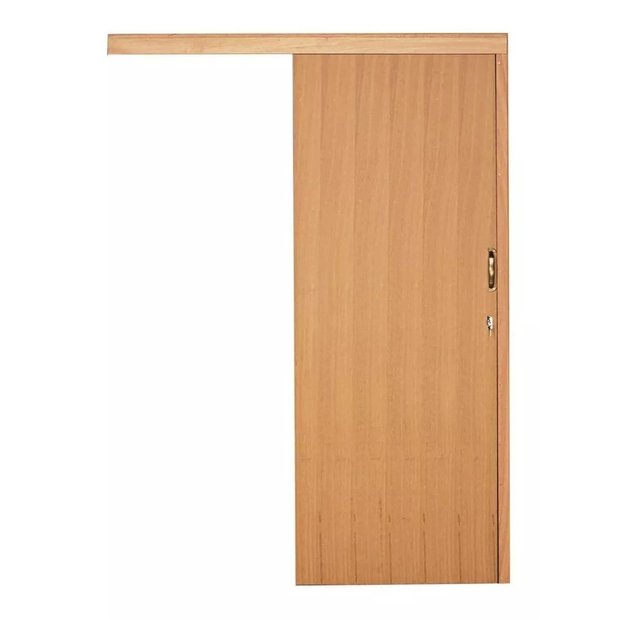porta de correr com trilho de madeira folha lisa padrão curupixá