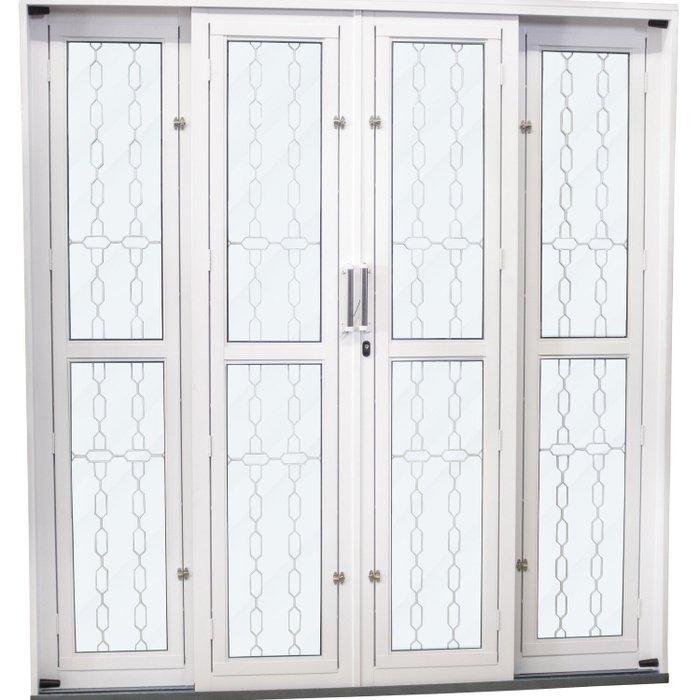 Porta de Correr de Aço 215x200cm Pantografica Grade Elo Ideal Crv Esquadrias Branco