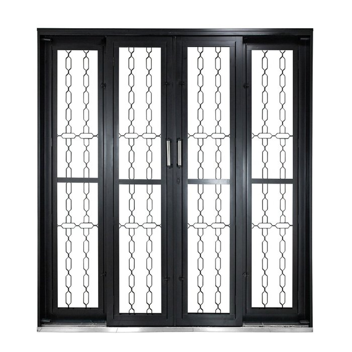 Porta de Correr de Aço 215x200cm Pantografica Grade Elo Ideal Crv Esquadrias Preto