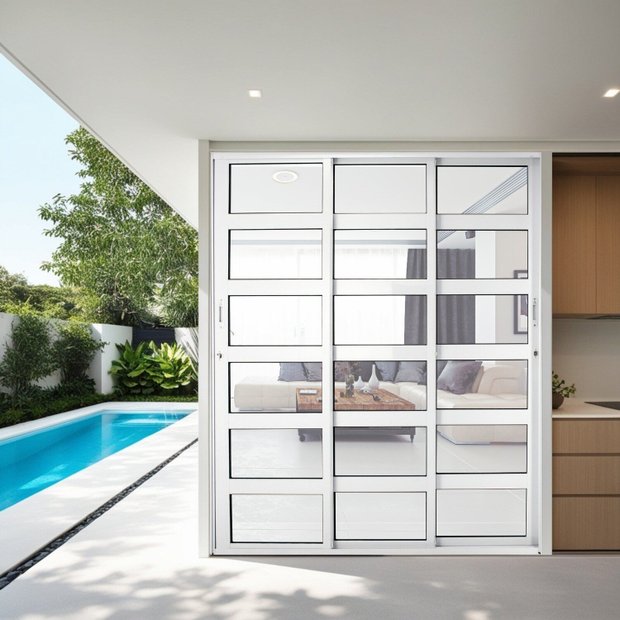 Porta de Correr de Aluminio 210x150cm 3 Folhas Moveis Branco