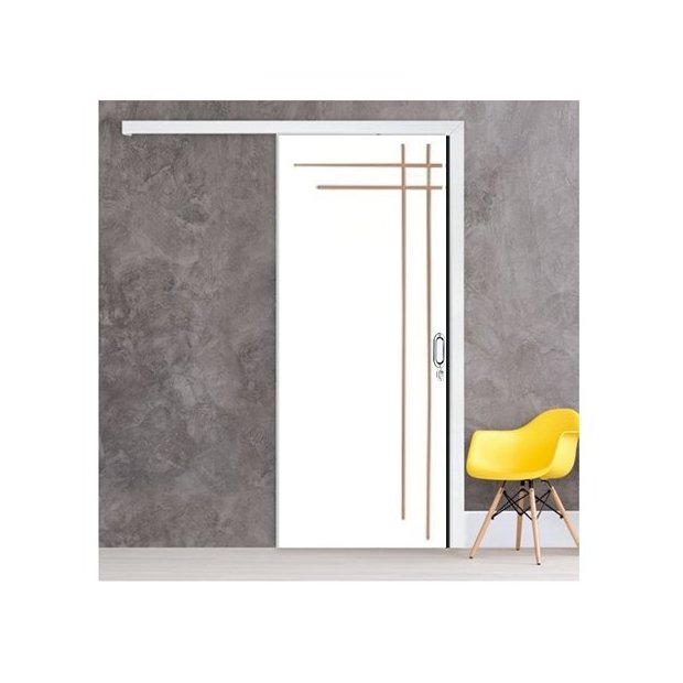 FOLHA DE PORTA DE MADEIRA FRISADA COM FUNDO PRIMER BRANCO COM KIT DE CORRER DE MADEIRA C/ FECHADURA