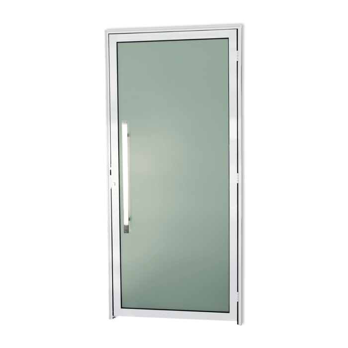 Porta de Giro com Puxador Alumínio e Vidro Temperado Murano Direita Super-25 Branco 210x100cm Brimak