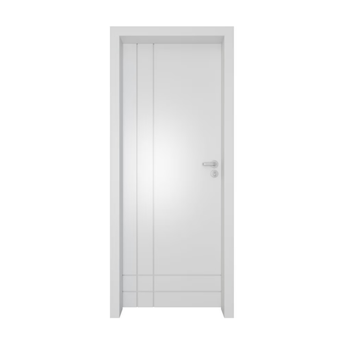 Feita em madeira sendo: quadro em madeira mecanicamente processada, enchimento do tipo colmeia (papel estruturado como uma colmeia de abelhas) ou núcleo cheio (bondoor); contracapa em chapa de fibra; fita de borda melamínica nas laterais (na mesma cor da porta); aplicação de impermeabilizante na soleira e cabeceira. Toda a madeira utilizada na fabricação da porta recebe tratamento para evitar a ação de cupins.