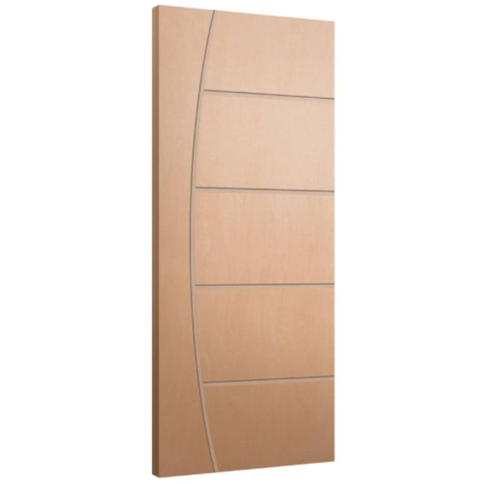A porta exibe um design único, caracterizado por um friso curvo delicadamente posicionado no canto, conferindo-lhe um toque de sofisticação artística. Complementando essa elegância, quatro frisos deitados horizontalmente adornam a superfície, proporcionando uma estética moderna e equilibrada. A fusão do friso curvo distintivo com os elementos horizontais cria uma composição visual harmoniosa, tornando a porta não apenas funcional, mas também uma peça destacada na decoração do ambiente.