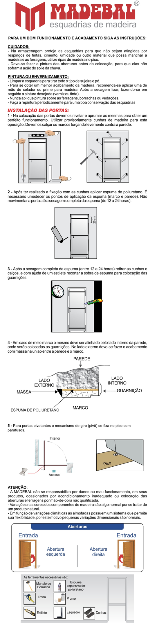 | Recomendações de Uso, Manutenção e Limpeza | Deve-se fazer a pintura das esquadrias antes do uso. |