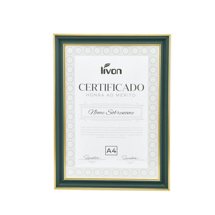 Porta Diploma Moldura Tamanho A4 Foto Retrato 21 x 29 cm:VERDE