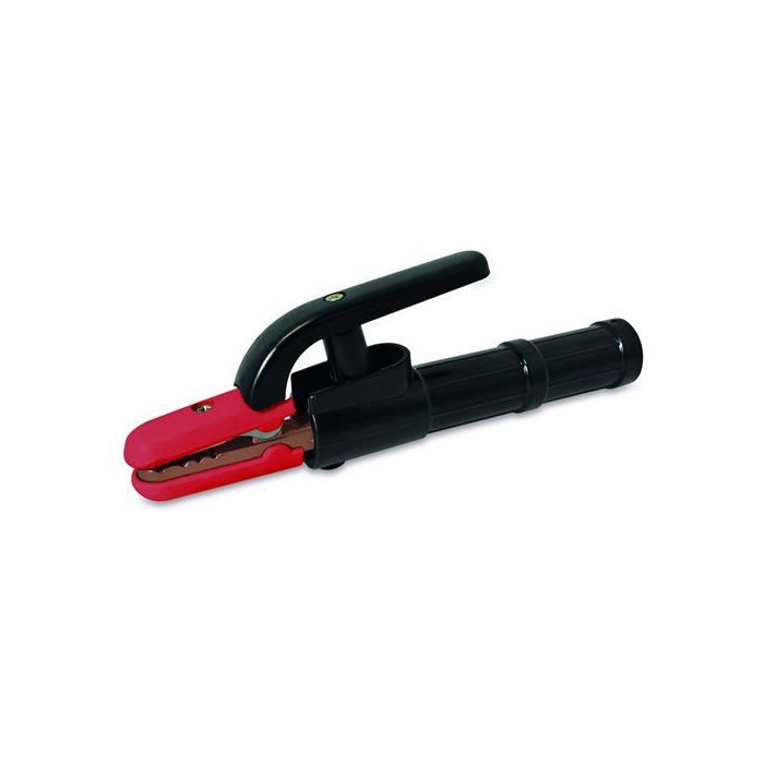 O porta eletrodo tem a função de fixar o eletrodo e transmitir por condução a corrente elétrica que vem da fonte de energia (máquina de solda). O porta eletrodo precisa ser isolante térmico, elétrico e ter boa ergonomia para que o soldador possa executar o serviço com praticidade e segurança.