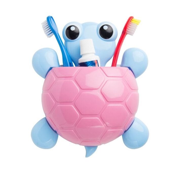 Porta Escovas E Pasta De Dente Tartaruga Com Ventosa: Rosa